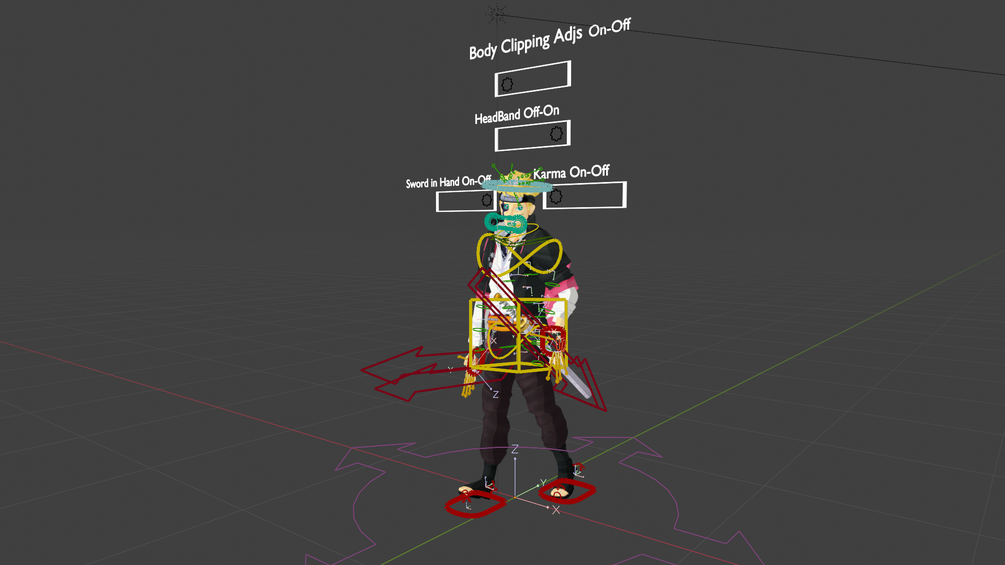 VRChat Avatar comes with fully configured physics bones and colliders, and with toggles for his jacket, coat, headband, sword, and for activating his Karma/Jougan.